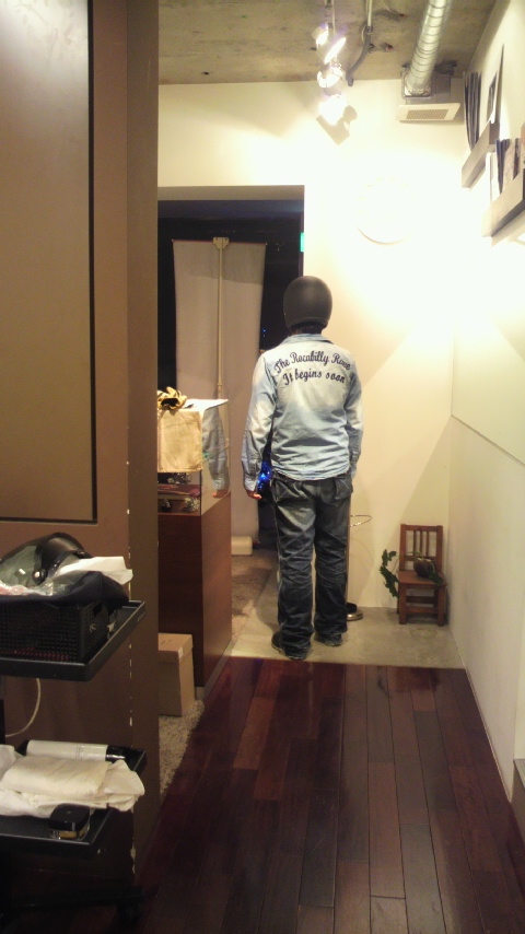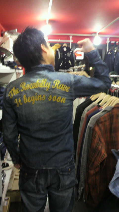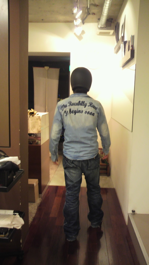 デニムシャツに手伸ばしてますが、