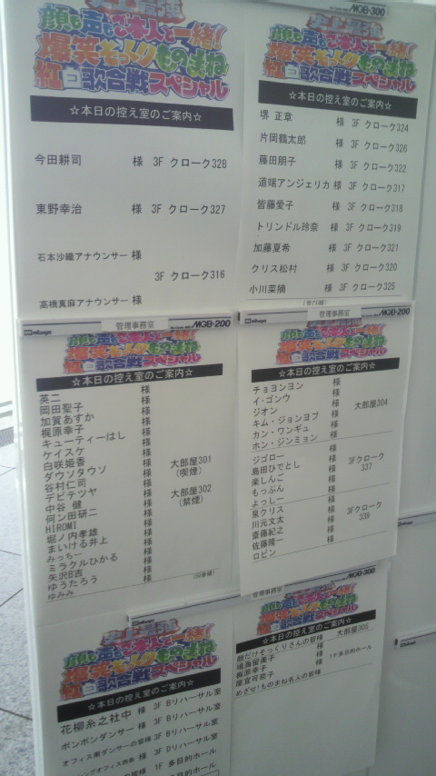 揃ったところでスタッフさんがお出迎え!ゲートをくぐり本日の番組や出演者のボードが・・・